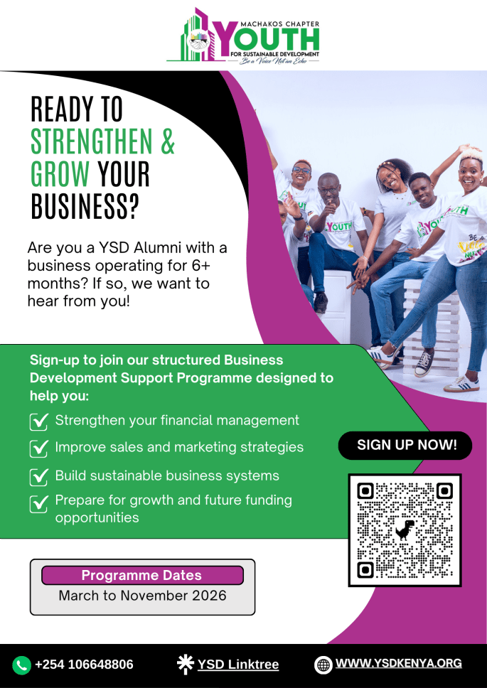 Join the Business Development Support Programme to grow your business, strengthen your entrepreneurial skills, and connect with a network of youth turning ideas into sustainable impact. Learn, share, take your business to the next level alongside fellow young entrepreneurs. and become part of a dynamic community of youth working to build sustainable and impactful enterprises.